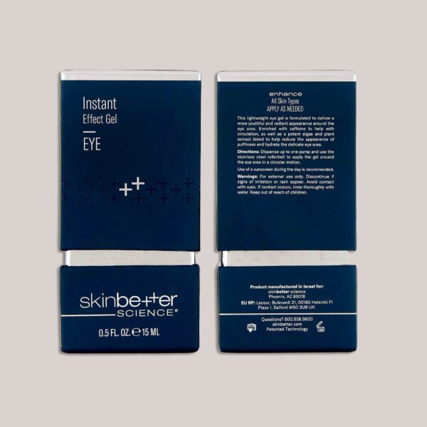 SkinBetter Instant Effect Gel EYE is a lightweight, cooling eye gel designed to reduce the appearance of puffiness, dark circles, and fine lines around the eyes for a refreshed and revitalized look.